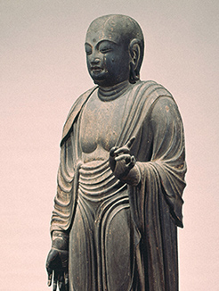 溌剌とした少年のような像で白鳳時代を代表する仏像です。もとは東院の絵殿にお祀りされていました。