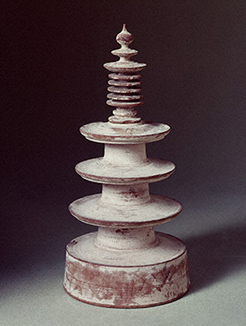 百万塔は天平宝字八年(764)称徳天皇が発願され、神護景雲四年(770)に完成したと言われ、百万基が制作されたため百万塔と呼ばれています。塔芯を刳り抜いた中に収められた「陀羅尼」は年紀の明らかな印刷物としては世界最古のものです。完成後、大安寺、東大寺を初めとする十大寺に収められましたが、法隆寺に収められた十万基の内四万六千基弱が現存しています。