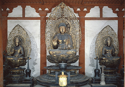 尚、堂内に安置されている薬師三尊像はこの再建時に新たに造像されたものです。